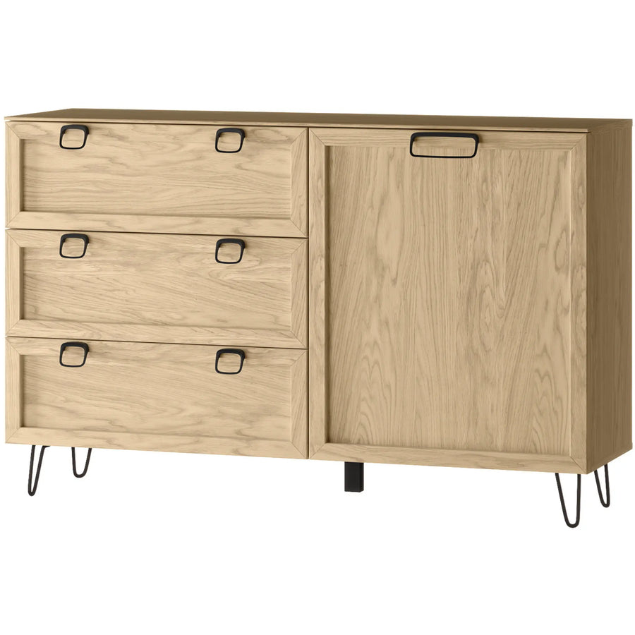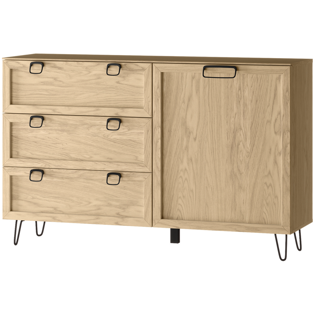 Cada peça destaca-se pela sua estrutura sólida, pelas frentes em carvalho com acabamento artesanal e pelos detalhes metálicos cuidadosamente integrados, que lhe conferem personalidade e distinção. A coleção oferece uma combinação perfeita de estética e funcionalidade, com soluções de arrumação pensadas para o dia-a-dia.