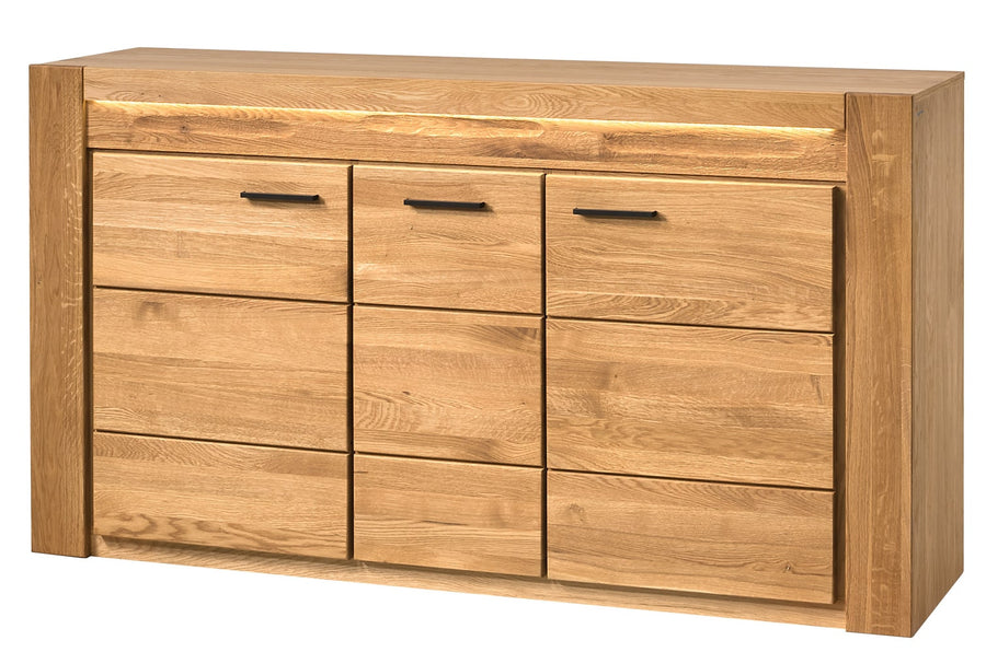 Londres da VESKOR é uma coleção exclusiva concebida de forma moderna. A beleza dos móveis é realçada pela decoração em carvalho nórdico e pela caraterística inserção horizontal e iluminada de madeira maciça inserida entre os elementos frontais. As transições suaves criam composições coerentes e fazem com que os móveis pareçam mais leves. A coleção foi criada com elegância e permitir-lhe-á criar arranjos complexos no seu interior.