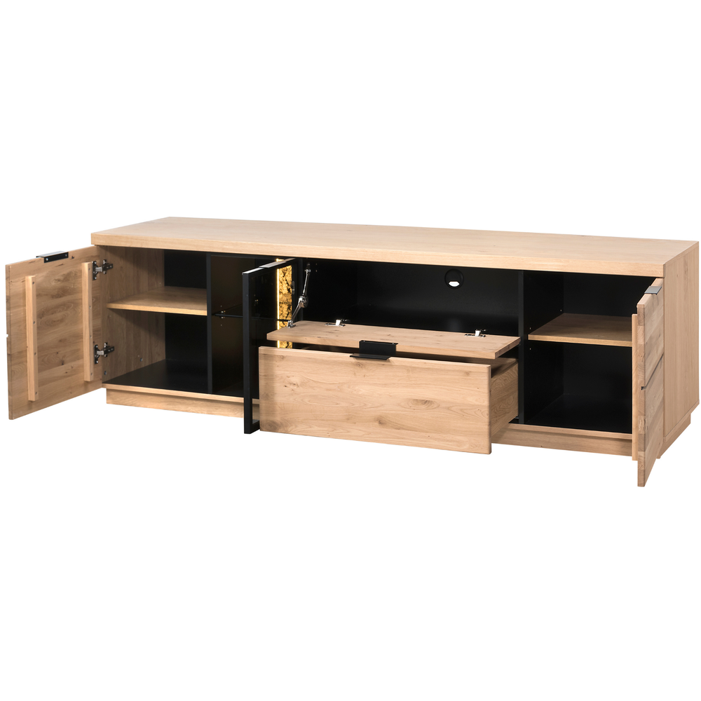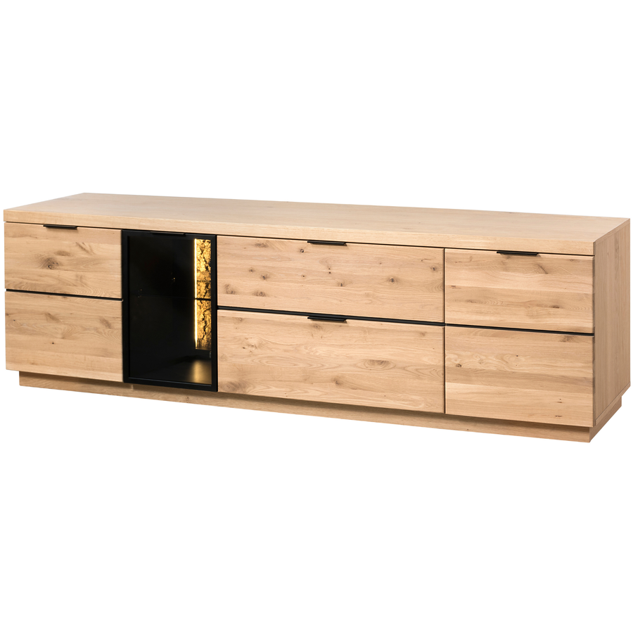 A coleção COLECÇÃO NAPOLI combina o design contemporâneo com a beleza orgânica do carvalho amendoado. Cada peça apresenta uma frente sólida, detalhes em forma de casca de árvore virgem natural e iluminação LED quente que transforma o interior do móvel num espaço cheio de profundidade, textura e carácter.