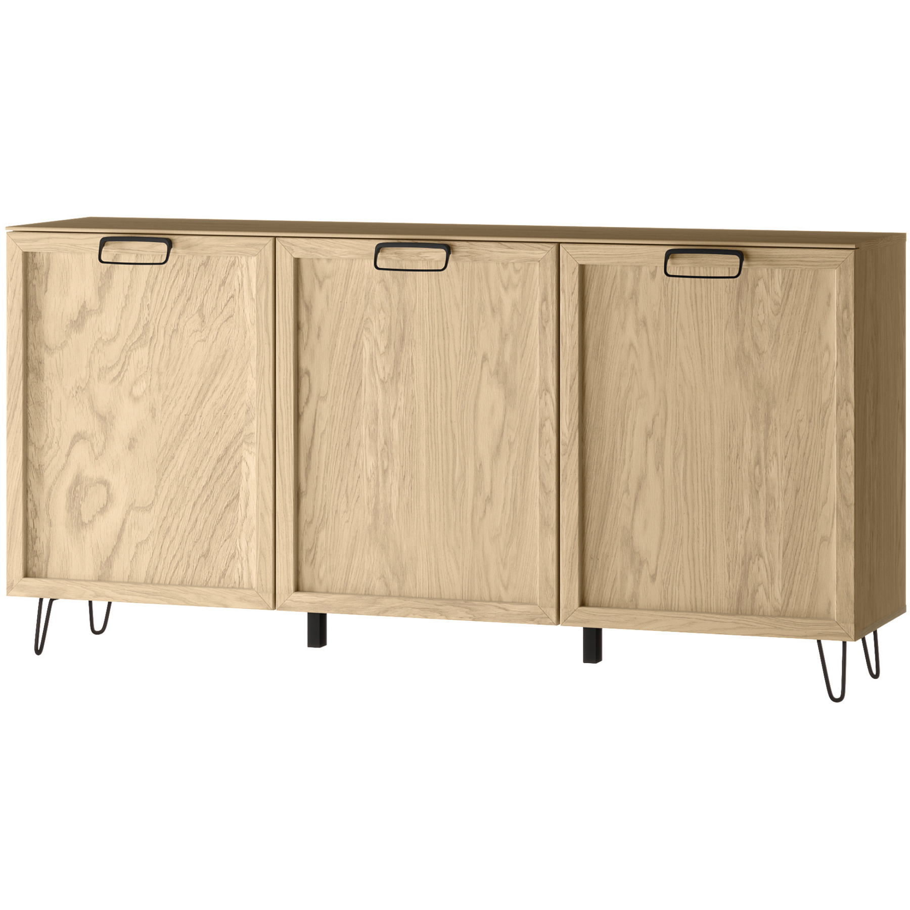 Fabricado com frentes em carvalho maciço amendoado e uma estrutura folheada a carvalho, destaca-se pelo seu acabamento quente e estética natural.